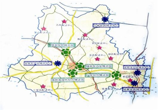 其中,包括随州东工业物流园、随州南现代综合物流园、随县综合物流园、广水综合物流园4个物流园区,以及安居农产品物流中心、小林铁路物流中心、杨寨铁路物流中心、武胜关工业物流中心4个物流中心,同时还将在三里岗、殷店、郝店、陈巷、李店、吴山、万和、吴店、余店等乡镇建设9大配送中心。通过这些物流基础设施的规划建设,完善随州的物流网络。