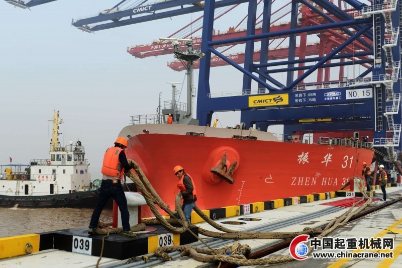 5月9日上午,载着桥吊的“振华31号”船在二艘拖轮的协助下缓缓靠上宁波舟山港金塘港区大浦口集装箱码头2号泊位,2台额定起重量吊具下65吨、最大外伸距达68米、最大起身高度45米的大型桥吊将卸载大浦口码头,并完成安装,投入大浦口码头的运营。