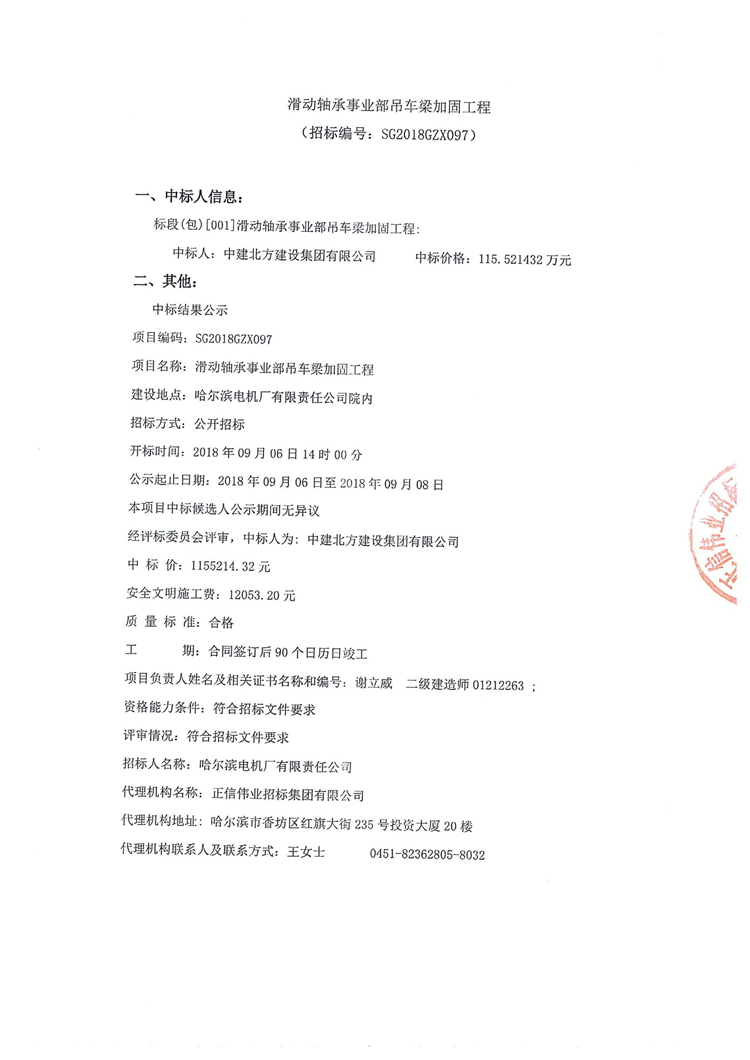 滑动轴承事业部吊车梁加固工程中标公示