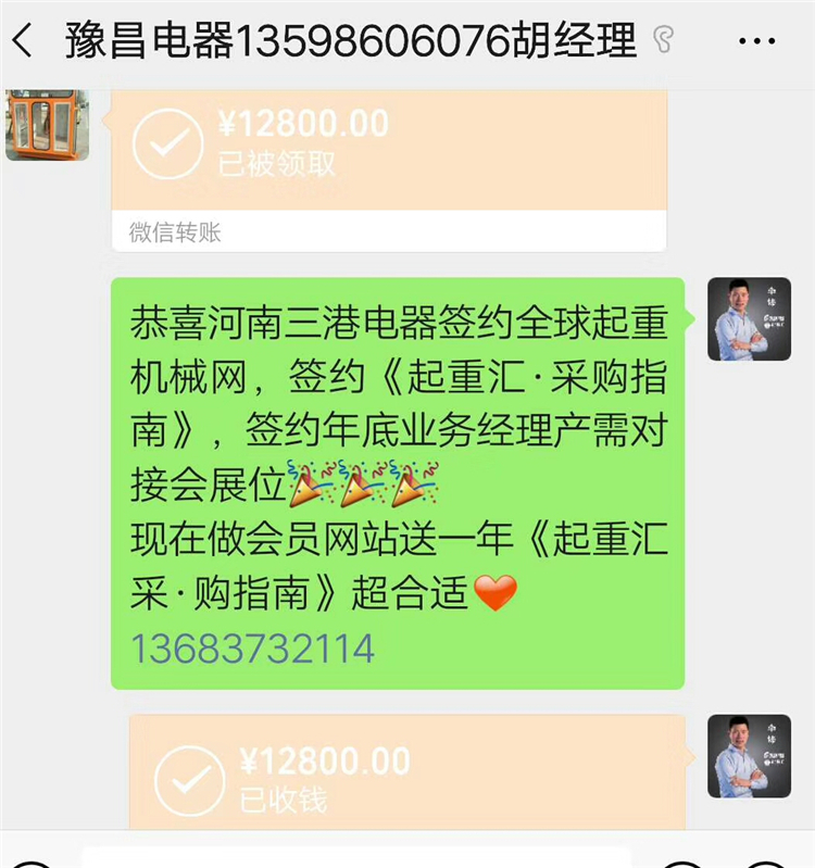 恭喜河南三港电器签约全球起重机械网,签约《起重汇·采购指南》,签约年底业务经理产需对接会展位!
