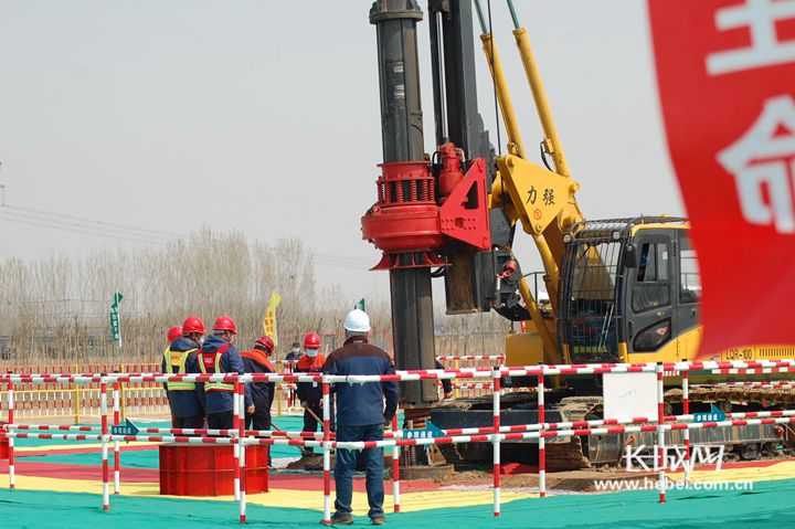 技术人员正在使用旋挖钻机进行基坑作业。