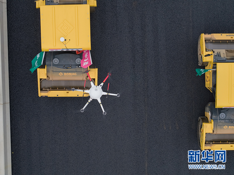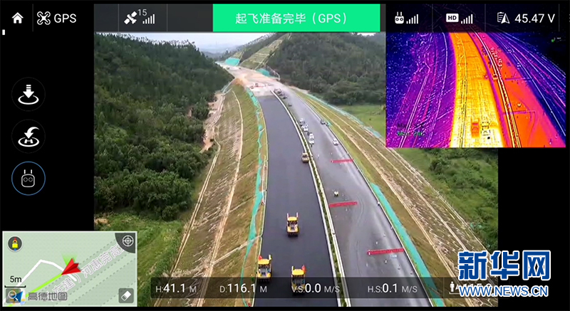 7月29日,广东省交通集团在建的紫惠高速沥青路面摊铺现场,一名工程师操控着无人机,并向施工人员发出指令。这是紫惠高速引进的“无人机载红外探测系统”,能够应用于沥青混凝土路面施工温度均匀性控制。