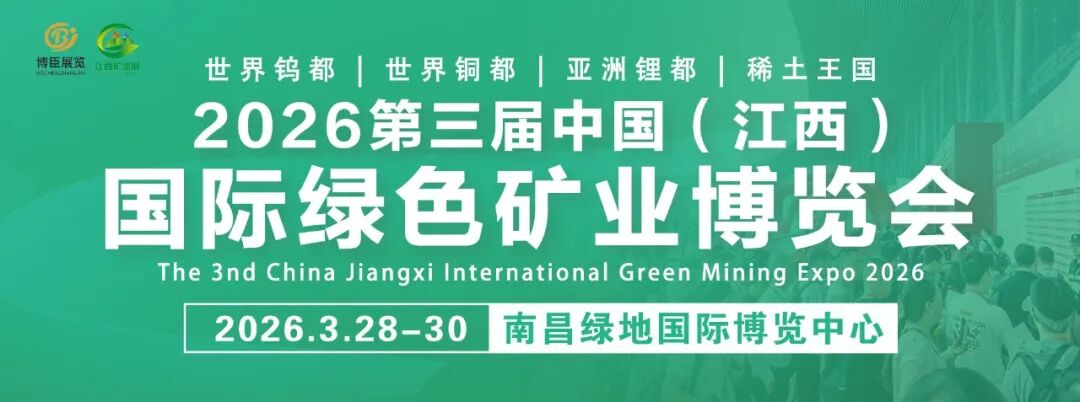 2026年3月30日,为期三天的2026第三届中国(江西)国际绿色矿业博览会在南昌绿地国际博览中心圆满落下帷幕。本届博览会以“绿色智慧创新•共促矿业发展”为主题,立足江西“世界钨都、世界铜都、亚洲锂都、稀土王国”的产业优势,汇聚国内外矿业领域政产学研用各界力量,共话绿色转型、共商智能升级、共谋合作共赢,为全国矿业高质量发展注入新动能。