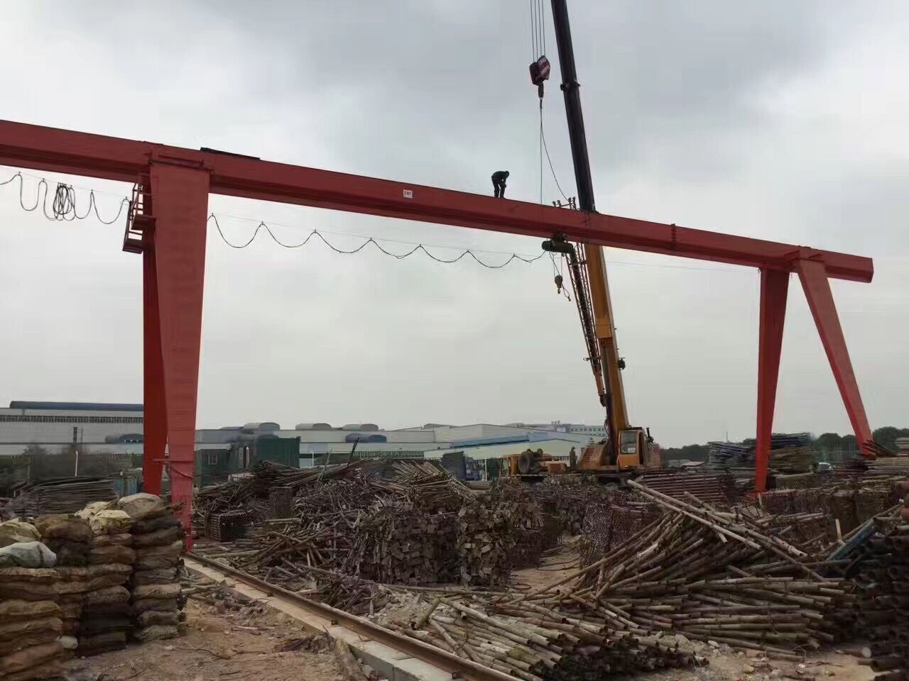 c.操作者必须在确认走台或轨道上无人时,才可以闭合主电源。当电源断路器上加锁或有告示牌时,应由原有关人除掉后方可闭合主电源。MH型电动葫芦门式起重机是中小型带悬臂简易龙门起重机。包括电动葫芦,大车运行机构,桥架,支腿,电气设备等部分。适用于车站码头,仓库货场,建筑工地,水泥制品场,工厂,水电站等露天作业场所,也适用于室内车间工作。电动葫芦门式起重机工作级别为A2-A5。