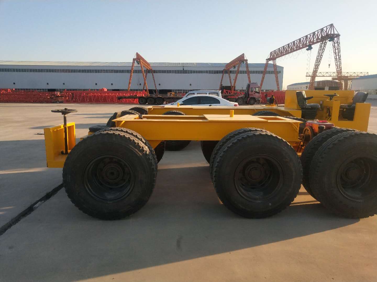 经营产品有:轮胎式运梁车、架桥机,门式起重机,公司生产加工设备先进,检测设备精良,拥有数控车床、数控钻床、加工中心、数控滚齿机、插齿机、精密镗床、万能铣床、各种磨床、龙门刨床、折弯机、大型车床、刨床、高中频淬火、井式、箱式淬火炉、回火炉、自动焊机、X射线探伤机等全部工艺流程。