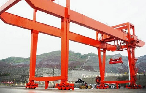 门架式起重机具有场地利用率高、作业范围大、适应面广、通用性强等特点,在港口货场得到广泛使用。它的金属结构像门形框架,承载主梁下安装两条支脚,可以直接在地面的轨道上行走,主梁两端可以具有外伸悬臂梁。