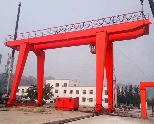 门式起重机,也被称为龙门起重机,是桥式起重机的一种变形。它的金属结构呈门形框架,承载主梁下安装了两条支脚,这使得它可以直接在地面的轨道上行走。主梁两端可以具有外伸悬臂梁,从而扩大起重机的作业范围。